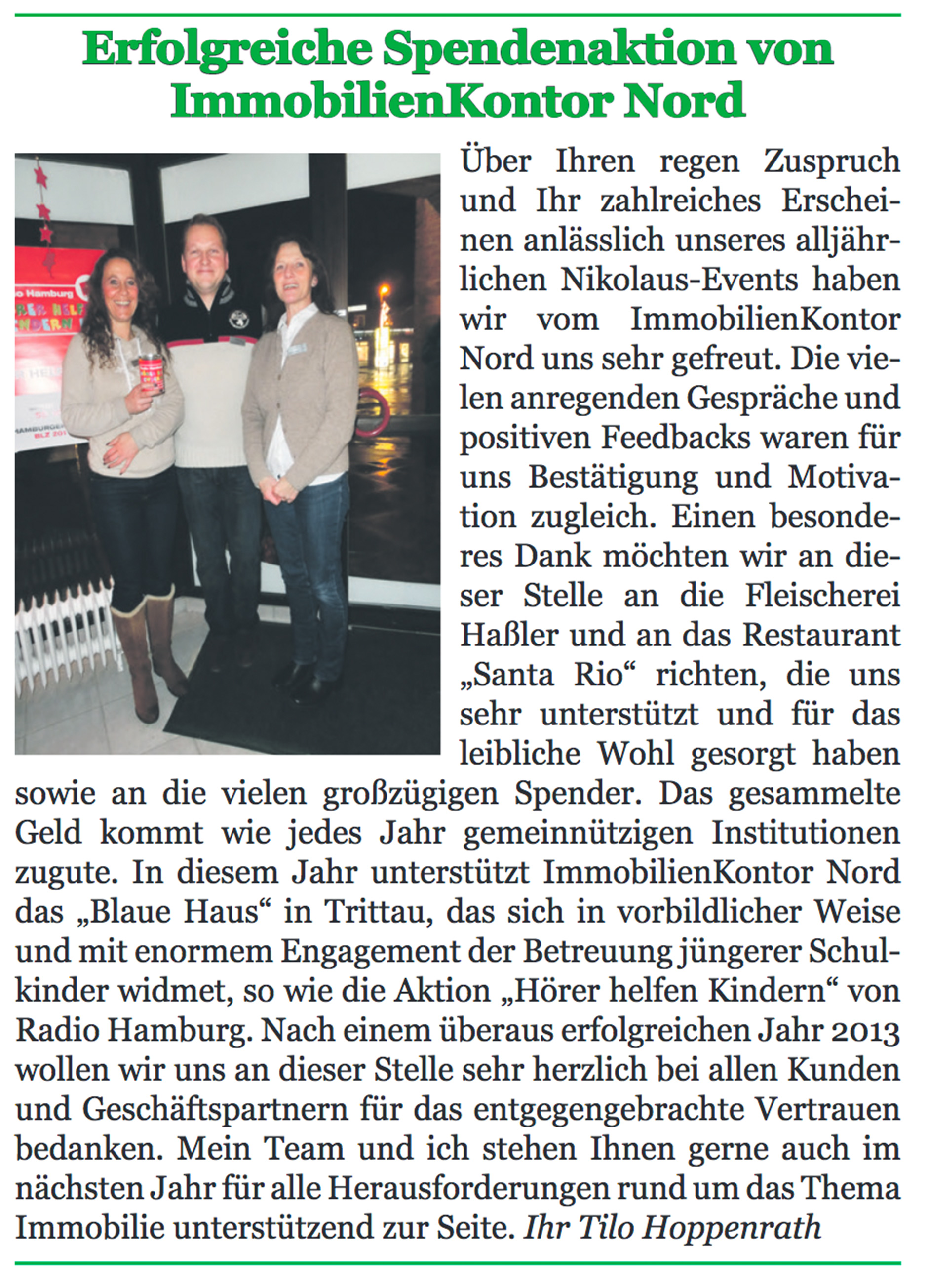 Spendenübergabe Kinderinitiative Trittau (K.I.T) 15.12.2014